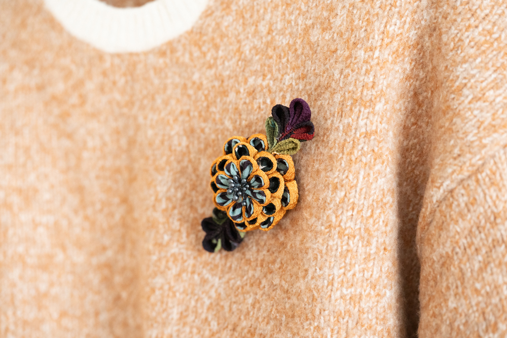 ブローチに仕立てて、洋服でも使えるように。