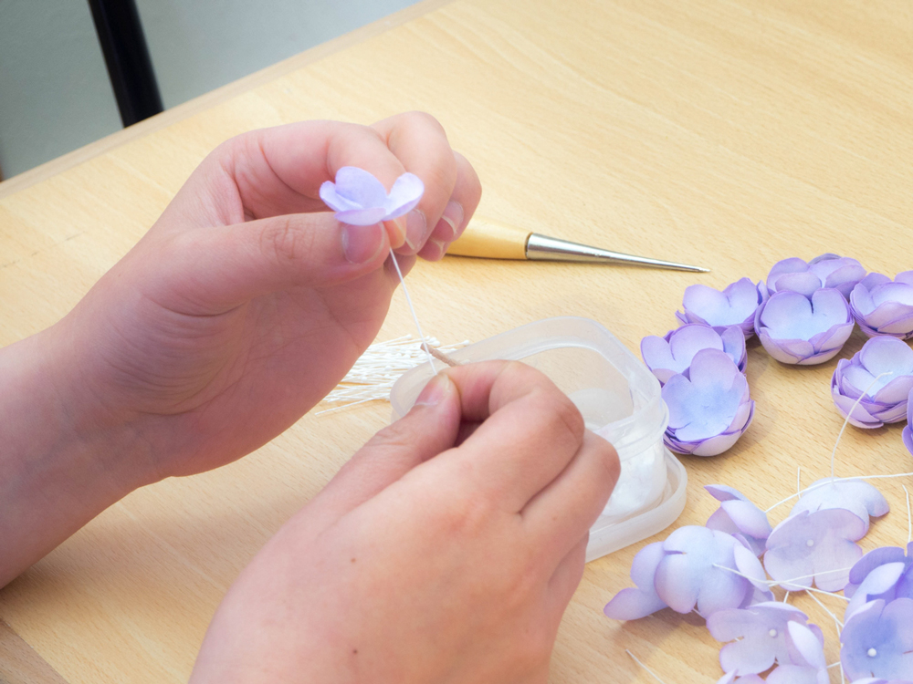 布花用のコテを使って自然な丸みを出していきます。