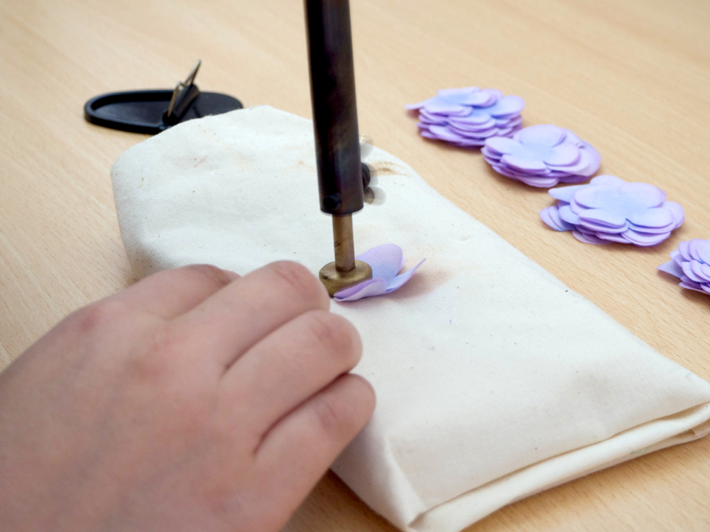 形ができた花びらの中央に、目打ちで穴を開けます。