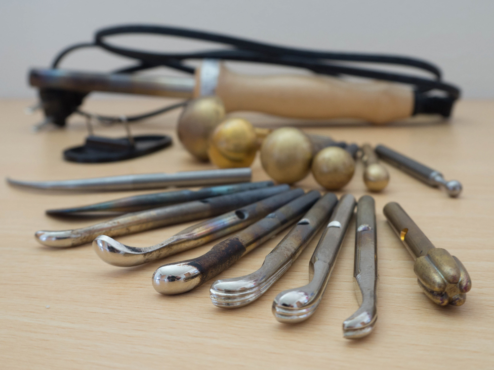 コテはアイロンのように熱くなり、熱を使って布に形を出す道具です。(高温になりますので火傷にはくれぐれも注意してください)