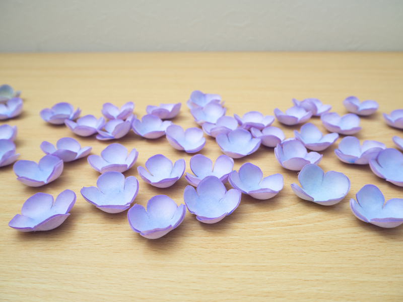 紫陽花やラナンキュラスなど花びらの枚数が多い場合は特にこの方法で切り出します。