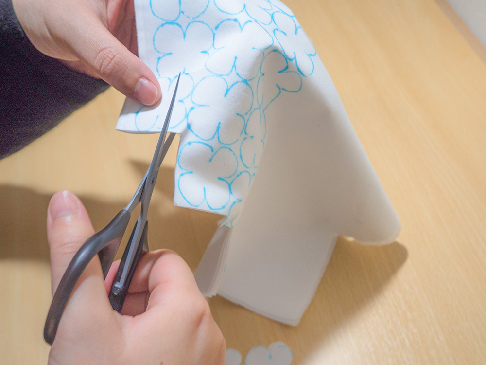 何度も繰り返して作る花は、クリアファイルを切り出してもいいかもしれません。