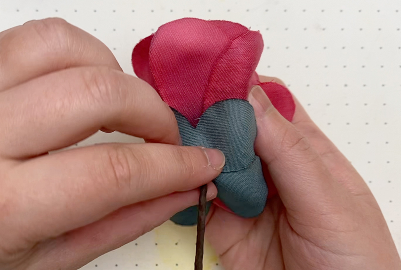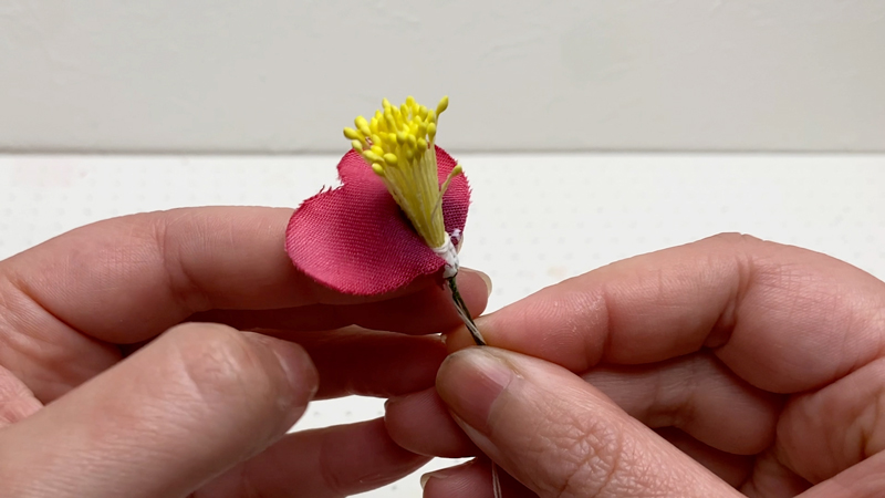 全ての花びらをつけることができたら、花びらの元にがくを付けます。