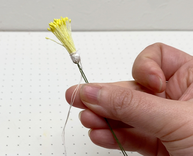 花芯は10本ほどをまとめて、真ん中をワイヤーで固定します。