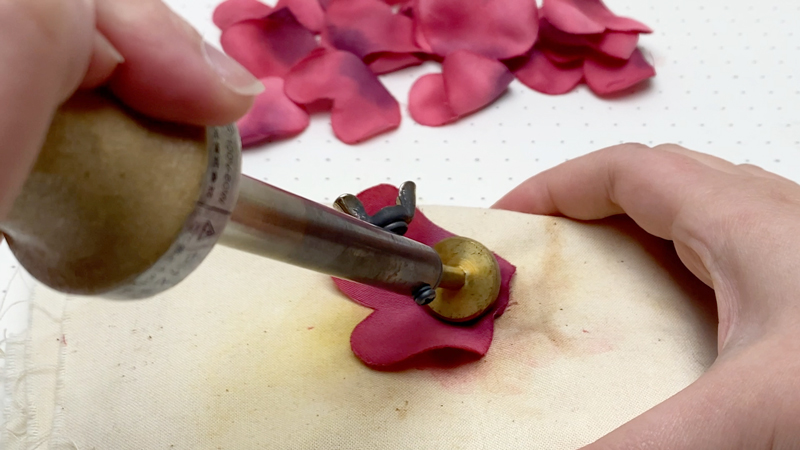 コテを使って熱を加え、花びらを立体的にしていきます。