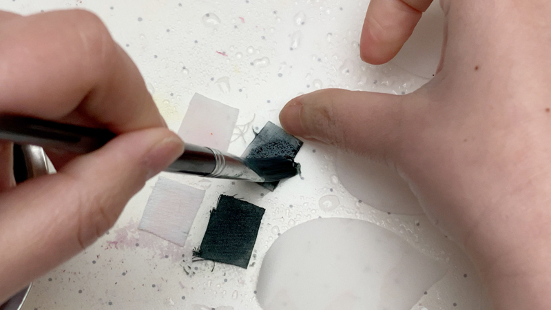 こちらも、塗る前に霧吹きで軽く湿らせてから色をつけます。