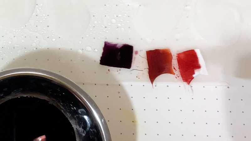 1回目の赤色が乾き切る前に、花の中央側に紫の色を乗せます。