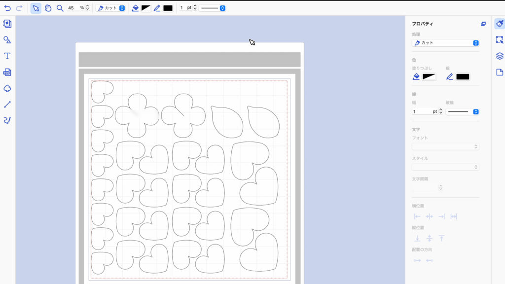 また、CADソフト上であれば効率よく同じ形を並べることができ、布や紙などの素材を無駄なく使うことができます。
