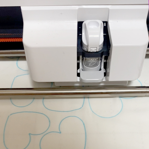 そこでチャコペンをセットし、花のパーツを布に写しています。5分ほどで全ての形が書き写されとても便利です。