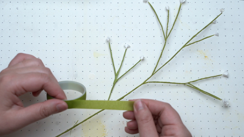 長さが欲しい部分は、ワイヤーを足しながらフラワーテープでまとめる作業を繰り返します。
