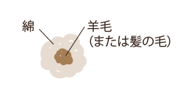 羊毛を丸く固めて、周りを綿でくるみます。これがピンクッションの中身となります。