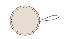 土台の布の縁をぐるりと縫って口を絞り、ピンクッションの中身を入れる