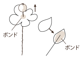 葉っぱは、工用ボンドをつけてワイヤーを挟むように中央に付けます。