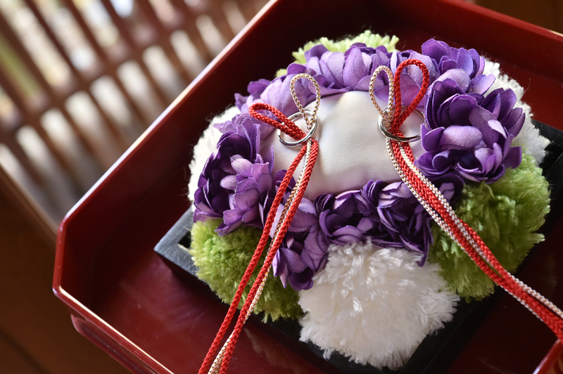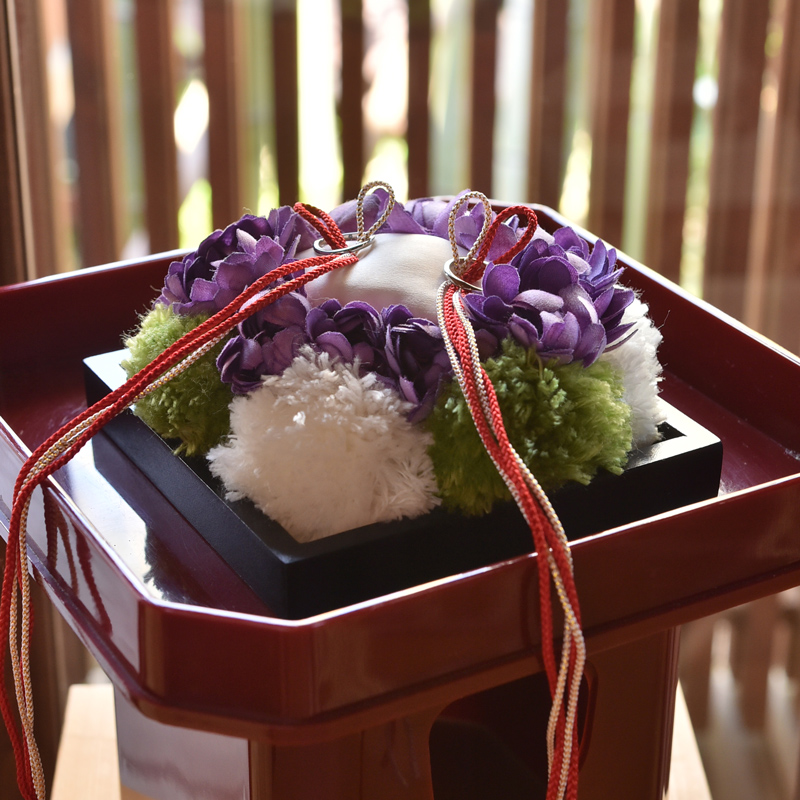 紫は日本古来から高貴さを表す色、白は白無垢やウエディングドレスに通ずる結婚式には欠かせない色。グリーンは爽やかさを感じさせる色です。